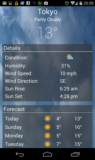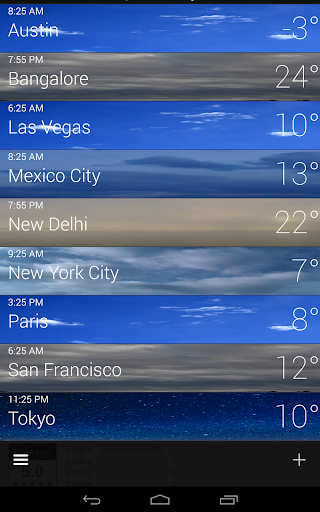Just select your favorite locations and you will immediately have updated weather and time information updated within seconds.