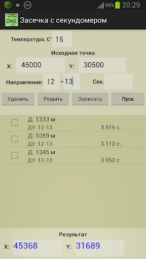 - Sexing con un cronometro (tenendo conto della temperatura dell'aria), il cronometro schermo.
