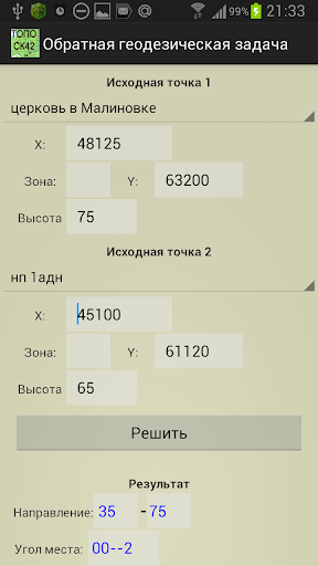 gli angoli di direzioni e luoghi in migliaia di scala 60-00 o 64-00. In OGZ e PGZ, gli angoli sono anche in gradi-minuti-secondi.