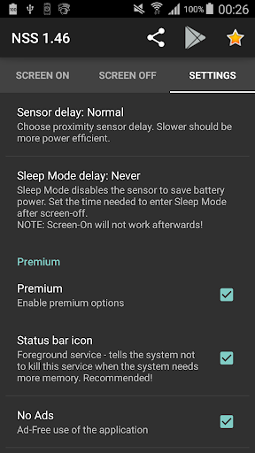 ✔ Automatically turn the screen off when you close the flip cover, put the device in pocket/bag, etc. (as long as the sensor remains blocked) and optionally lock the device after set amount of time (to make the screen stay off, even if the sensor gets unblocked);