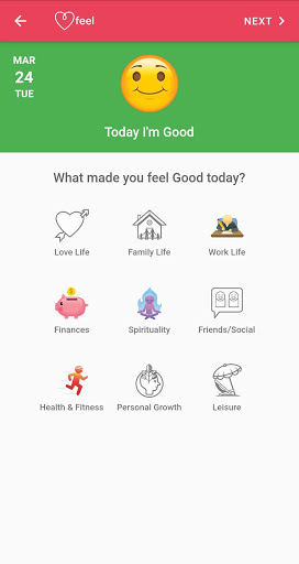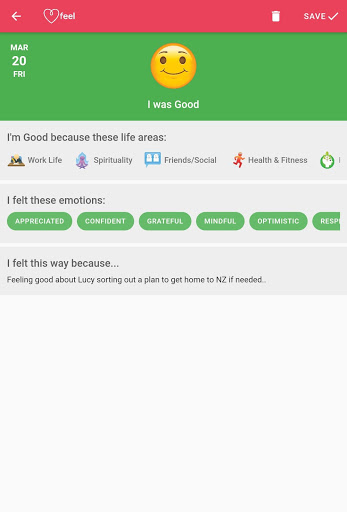 Come ti senti su base giornaliera è importante, l'app Feel include un Mood Tracker, sentimenti Tracker, Emotions Tracker, un diario dell'umore, un diario dell'umore, un diario e l'area di vita per aiutarti a capire come portare l'equilibrio alla tua vita oltre a capire le tue emozioni.