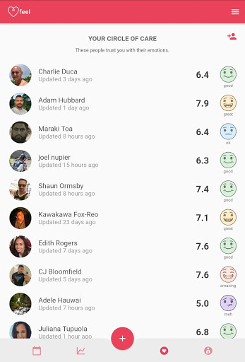 L'app Feel ti incoraggia a connetterti con gli amici, condividi come ti senti con le persone di cui ti fidi e fornisci supporto ai tuoi amici e familiari quando si sentano giù.