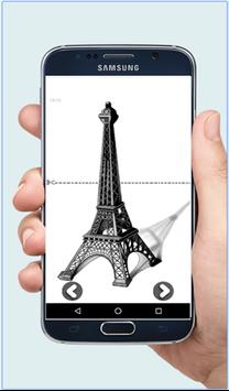 Oue App how to draw 3D is a step by step demonstration that will teach you how to create an anamorphic drawing or draw in 3d, An Anamorphic image is a deformed image that appears in its true shape when viewed in some unconventional way.