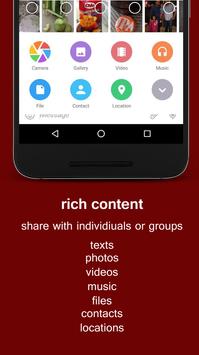 GROUP CHAT & SHARING: With Babaal, you can form large group chats of up to 5000 members, quickly share large videos, documents (.doc, .ppt, .zip, etc.), and send an unlimited amount of photos to your friends.