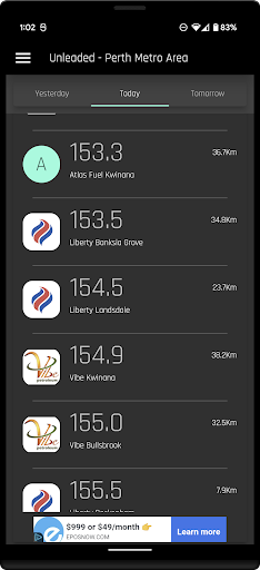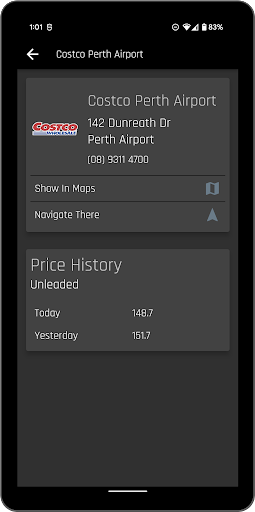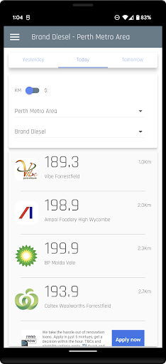 Note the app uses data from the Department of Commerce Western Australia and the FuelWatch service.