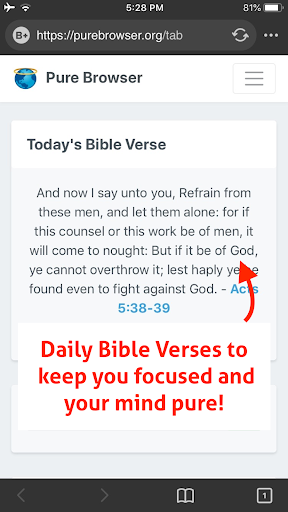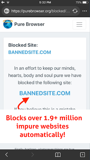 Pure Browser automatically filters out over 300 impure words and blocks over 1.9 million impure sites that may cause impure thoughts.