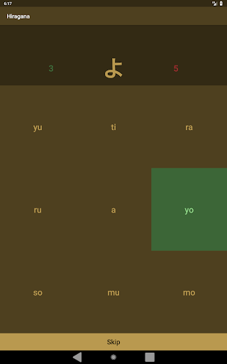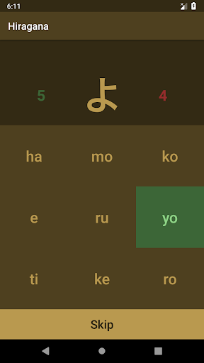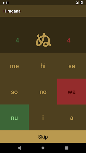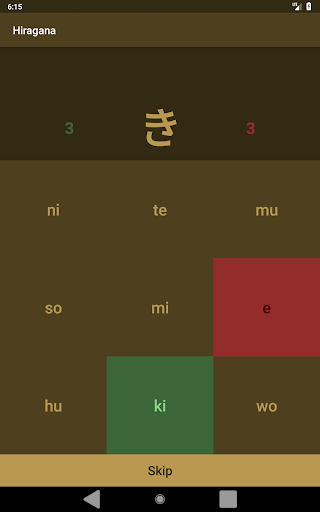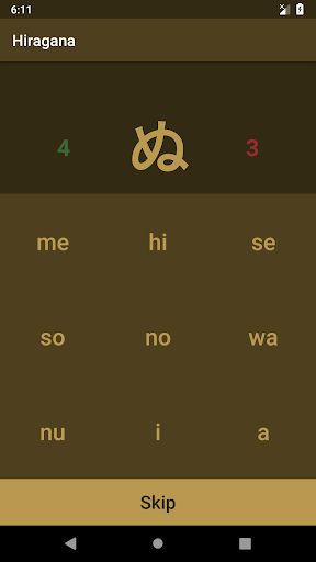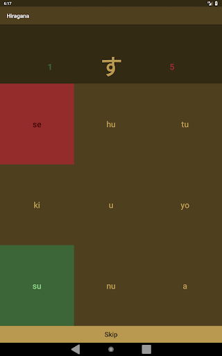 Learn hiragana by memorizing and selecting the correct counterparts of Japanese characters