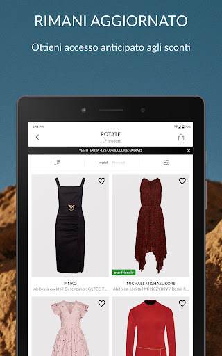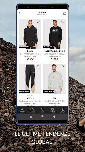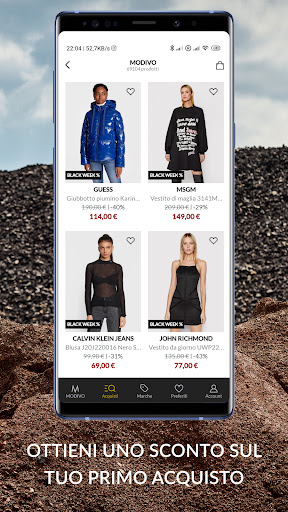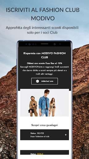 Grazie all'app hai la moda a portata di mano. Scopri centinaia di novità, tieniti aggiornato con i trend e conosci i must-have più caldi. Lasciati ispirare e crea outfit perfetti. Nell'app MODIVO puoi accedere alla cronologia degli acquisti e creare una lista dei tuoi prodotti preferiti! Ti attendono anche promozioni dedicate solo a Te. Scarica la nostra app per essere il primo a ricevere informazioni sugli sconti sul sito.