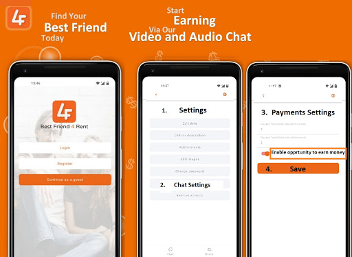 We are all in the same boat, we all need someone to talk to and spend time with, so use BestFriend4Rent Mobile App services to find happiness today! BestFriend4Rent Mobile App provides members with an opportunity to find their best friend. Chat with friends via our video or audio chat.