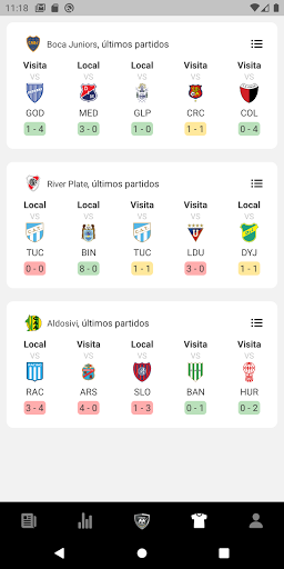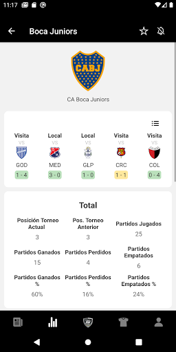 Mirá las estadísticas de la superliga, la libertadores, copa argentina y la sudamericana, además también mirá las estadísticas de tu equipo favorito y la racha de los últimos 5 partidos de los equipos que seguís.
