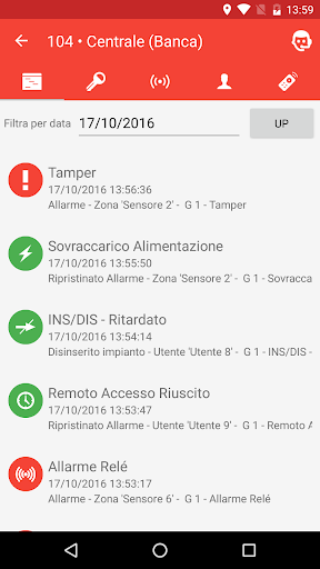 L'applicazione Point Security Mobile permette di verificare in modo veloce e immediato lo storico e i dettagli riguardanti i tuoi impianti dall'allarme gestiti da Point Security Service.