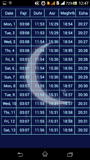 App for Muslim prayer time Azan, Qibla and Amskia for Ramadan and you can see the prayer time of any city you want by long pressed in map and you can navigate by days