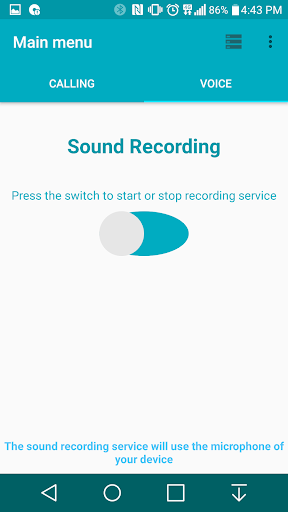 This application allows the recording of outgoing and incoming calls by clicking on the switch, additional allows the recording of sounds which can be taken as voice notes