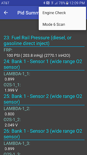 These include both Turbo boost and diesel sensors and DTC freeze frame, base application offers over 15,000 DTC offline decodes, no WiFi connection needed plus DTC clearing. Designed for use with low cost Bluetooth adapters. Handles multiple messaging from multiple ECU's with readouts in both English and metric. Engine Check function provides readiness and freeze frame DTC. DTC decode (Upgrade feature) includes likely cause when available as part of diagnostics. Upgrade support for SAE mode 6 diagnostics, now includes extended DTC decode, for 40 vehicle manufacturers.