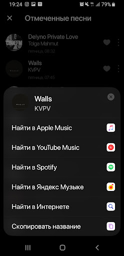 - La capacità Per trovare le tracce tramite Yandex Music, Spotify, YouTube Music, Apple Music.