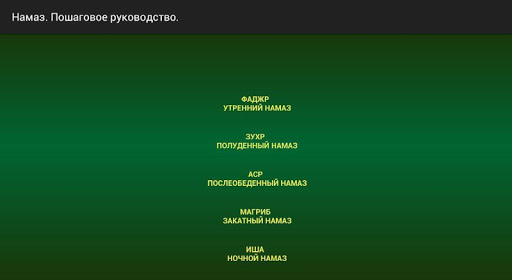 В приложении пошагово изложены все элементы пятикратного намаза.