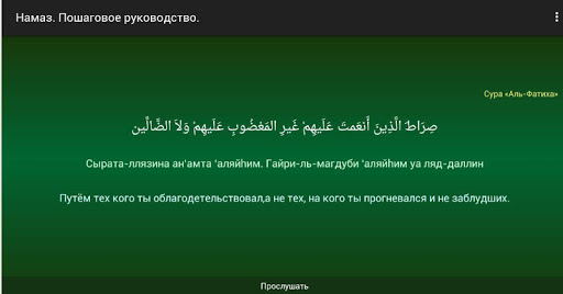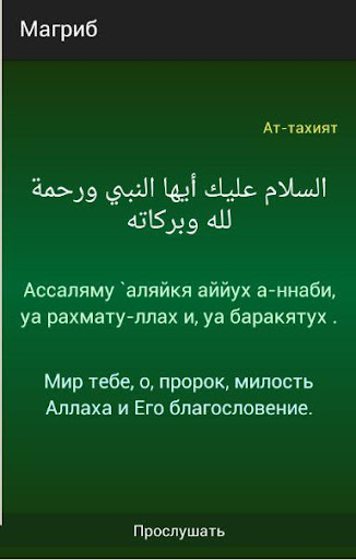 Текст представлен на языке оригинала (арабском), дополнен транскрипцией и переводом. Также к каждой фразе есть аудиозапись, чтобы прослушать профессиональное чтение намаза.