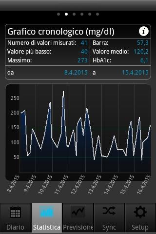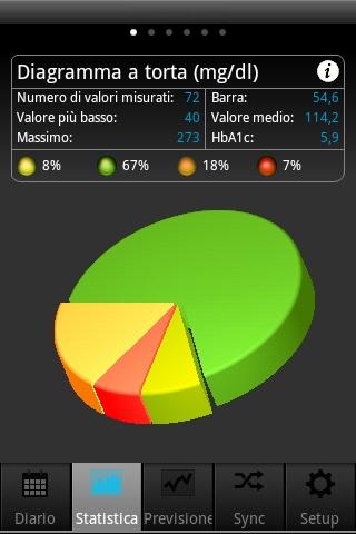 • grafici statistici completi (diagramma a torta, curva di andamento, giornata standard e statistica dettagliata)