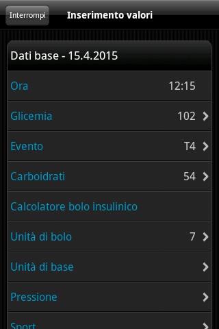 • i valori glicemici possono essere inseriti in mg/dl o mmol/l
