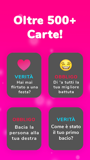 Obbligo o verità? Questo gioco è perfetto per feste, appuntamenti o semplicemente per rompere il ghiaccio. Vi regalerà un'incredibile quantità di divertimento! Il nostro gioco è pensato per adolescenti, adulti e coppie, quindi è perfetto per una festa epica o per una serata birichina in coppia. L'abbiamo progettato appositamente per giocare insieme agli amici, quindi vi aspetta una serata indimenticabile!