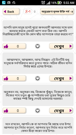 We release this inspirational quotes is really very nice educational apps. Inspirational quotes will motivate our life to take a better action in our life. Inspirational quotes in bangla will help the people who are having less confidence in their life. I would say this inspirational quotes in bangla will help them to build their confidence. We added here the best inspirational quotes about life. People will know how to get success in life and control their lifestyle using this application. They can also use these bangla quotes for facebook status . I can say this bangla bani will take a good part changing your life.