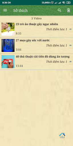 - Để xóa một Video yêu thích bạn vuốt mục ưa thích từ phải sang trái và để xóa tất cả các Video yêu thích bạn click vào biểu tượng thùng rác