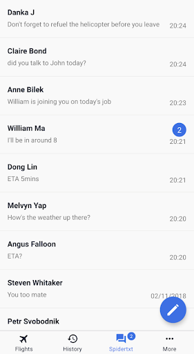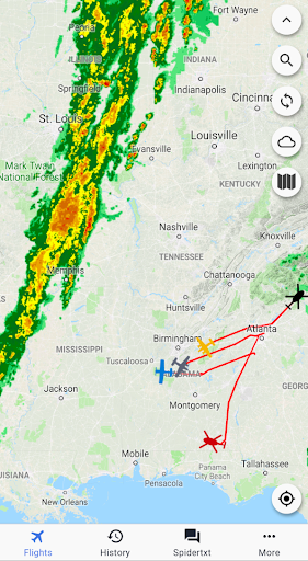 L'applicazione SpiderTracks consente all'utente con un account SpiderTracks di visualizzare le informazioni di volo e comunicare utilizzando SpiderTXT sul proprio telefono Android.Una volta effettuato l'accesso, l'applicazione mostra la posizione di tutti gli aerei in tempo reale, inclusa una storia di voli.Gli utenti possono anche sovrapporre aggiornamenti meteorologici in diretta a una gamma di tipi di mappe diversi tra cui VFR, IFR High e IFR Basse mappe.
