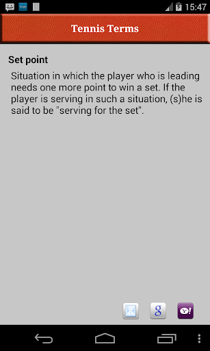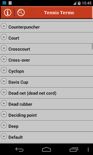 If you are a tennis enthusiast, but never quite understood the difference between 'slice' and 'topspin', this application "tennis terms" offers you easy-to-understand definitions for the most common tennis expressions!?