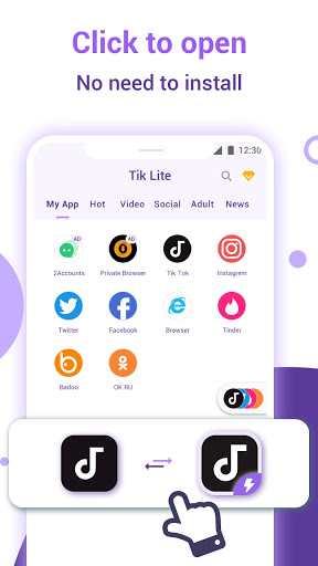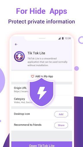È possibile creare un'icona per qualsiasi applicazione luminosa e posizionarle sul desktop del telefono in modo da poterlo aprire sul desktop. Non c'è bisogno di preoccuparsi, non occuperà la tua memoria, non è richiesta alcuna installazione, ed è ancora sicuro.