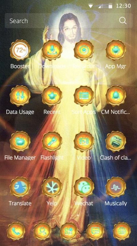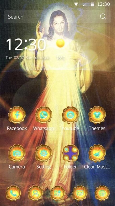 The theme of the wallpaper overall color is yellow plus five color mention the faith of God's inclusive kindness in addition to black and purple. The theme icon is the gold lotus flower bottom for purity and beauty.