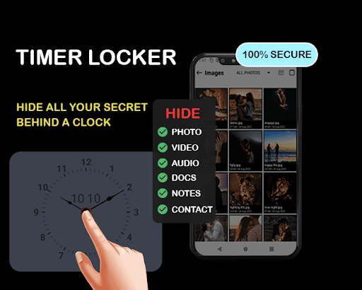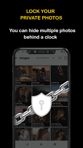 - Le tue immagini nascoste sonoprotetto tramite blocco orologio o blocco delle impronte digitali.