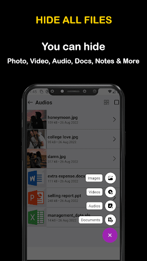 - Nascondi video, audio, immagini, contatti, file di documenti, note e altro ancora.