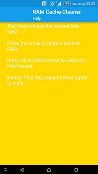 Notice: This App requires Root Access! This App shows your current free RAM and cleans your RAM Cache without affecting your applications like other RAM Cleaners.