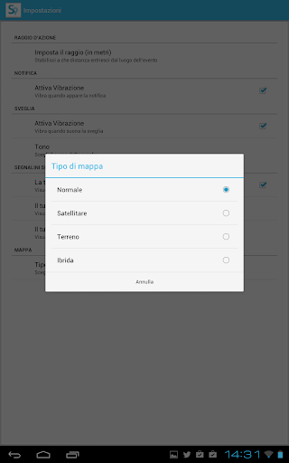 - Un popup avvisa che la gestione automatica del GPS è consentita solo su alcuni dispositivi.