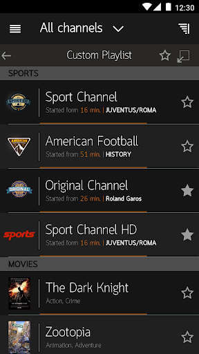 - Possibilità di dividere una lista canali in sezione (solo con playlist compatibili).