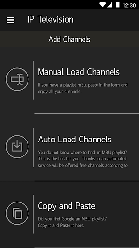 Con IP Television puoi creare o caricare tutti i canali e le playlist di canali.