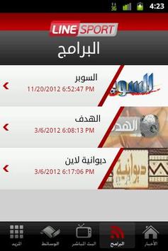 برنامج قناة لاين سبورت يقدم الأخبار الرياضية الحصرية بالإضافة إلى معلومات عن البرامج المقدمة من خلال القناة وبالإمكان متابعة بث القناة من خلال خاصية البث المباشر مع الربط المباشر لقناة لاين سبورت على اليوتيوب