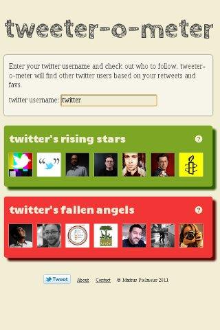 check out your twitter favourite usersEnter your twitter username and check out who to follow. tweeterometer will find other twitter users based on your retweets and favs.