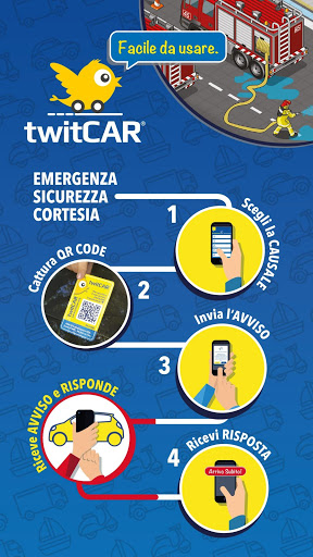 TwitCAR è uno strumento di comunicazione sociale e civica, consapevole della necessità di avere più sicurezza sulle strade in situazioni di emergenza e di sicurezza, ordinarie o di sosta critica, che consente di mettere in comunicazione diretta gli utenti interessati tramite una messaggistica appositamente creata.