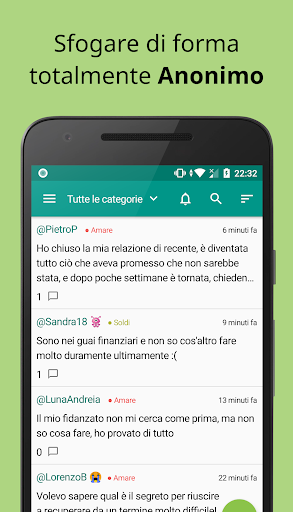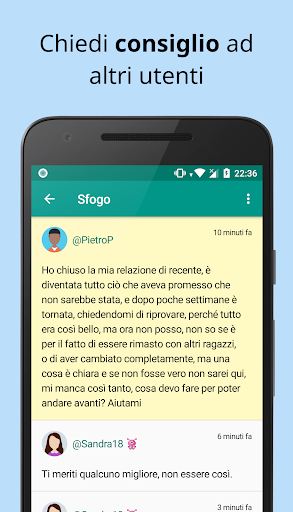 Incontrare nuovi amici virtuali e interagire in modo anonimo, oltre a sfogarti e chiedere consigli, potrai fare nuove amicizie e parlare di tutti i tuoi problemi e le tue gioie.