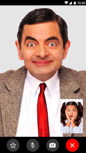 Video call from Mr Bean is a simulation of incoming video call from a very funny guy called Mr Bean! It's a movie character played by Rowan Atkinson. You can pretend to talk with your favourite actor on video call, phone call and a chat!