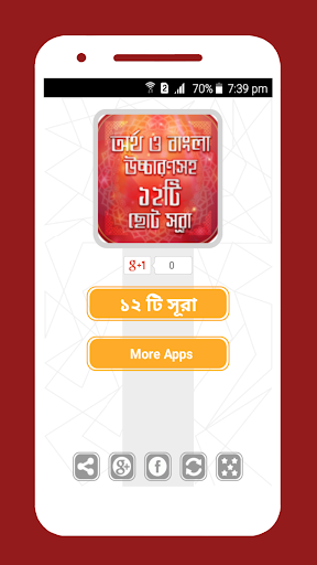 Surah bangla is an islamic bengali apps. We choose 12 out of 114 surah bangla anubad. As namaz shikkha is the most important thing after iman so we provided 12 sura from al quran bangla uccharon with meaning. We could not manage all audio sura or quran mp3 instead onubad. You will get in this islamic app namaz shikkha all sura bangla.