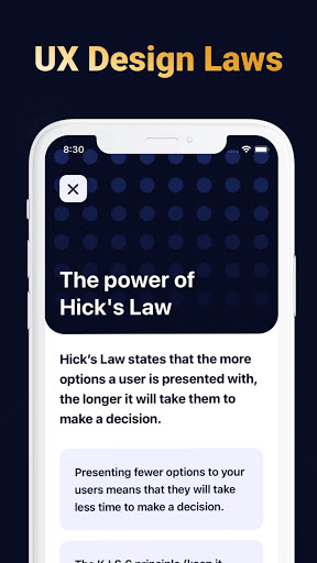 Sia che tu sia un Designer UX esperto che guarda a promuovere le loro conoscenze, o tu stai cercando di iniziare una carriera in UX Design, questa app può aiutarti a imparare la psicologia cognitiva dei tuoi utenti.