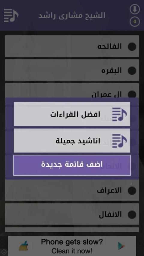 يمكنك تحميل الملفات الي جهازك واضافتها الي قوائم خاصة بك لتستمع اليها