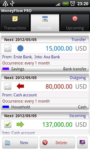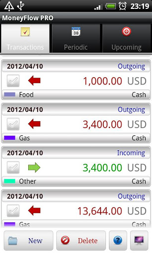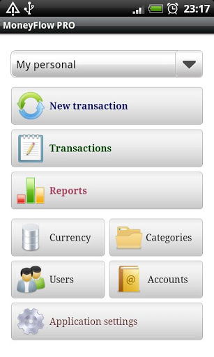 Manage your personal finance anytime anywhere with MoneyFlow Pro Expense ManagerMoneyFlow Pro Expense Manager is complete budget planner solution combined with an expense tracker bill reminder, checkbook register, monthly reports and many other usefull features.Input and access your financial informations. With interactive reports and graphs you can analyse your income, expenses, cash flow and balance. Track income and expenses for multiple accounts in multiple currencies.Setup periodically repeating incoming salary and outgoing monthly bills transactions, or you can set transfers between accounts.Automatically backup database onto your SD card you can restore a backup any time if you change or reinstall your device.Register different users, for example My personal money management, My company money manegement etc.Define custom currencies by userCreate categories for incoming and outgoing realizationsHandle multiply accounts, for example: Cash, Credit card, Bank account etc.Create three different transaction: NORMAL, PERIODIC and UPCOMINGPassword protectionPlease Like us on facebook http:www.facebook.commoneyflowproSTART UP1. Add your currency in quot;Currenciesquot; menu2. Add your categories or remove te unused categories from quot;Categoriesquot; menu3. Create your accounts in quot;Accountsquot; menu and set your Startig Balance for every account4. Now you can add new transactions in quot;New Transactionquot; or quot;Transactionsquot; menu.One transaction direction can be:a. Outgoingb. Incomingc. TransferThere are 3 types of transaction:a. quot;TRANSACTIONquot; This is the normal transaction typeb. quot;PERIODICquot; With this transaction type you can set recurrent transactions, ex. monthly bills outgoing or your salary incoming. Here you don39;t have to set the Amount if you don39;t know yet. Every Periodic transaction automatically create an: c. quot;UPCOMINGquot; transaction and you will get a notification. You can activate this transaction: To edit, go to quot;Transactionsquot; list quot;Upcomingquot; tab, tap and hold the selected item and press the quot;SETquot; button. before this action you can modify some data on form YOU CAN MODIFY EVERY RECORD BY TAP AND HOLD THE ITEM THAT YOU WANT TO EDITThis trial version is available 1 month. To remove this limitation, go to Application Settings menu and pay 7.99 or download the paid version:https:play.google.comstoreappsdetails?idwd.moneyflowprocheckout Keywords: money manager, personal money manager, expense manager, finance manager, personal finance, personal finance manager, personal money management, budget manager, budget tracker, spending tracker, income calculator, checking account, receipt tracker, household budget, family budget, financial planner, financial calculator, accounting, finance, cash register, cash organizer money, checkbook, book keeping, book keeper, mobile expense tracker, mobile money app, mobile money managerhttp:www.moneyflowpro.net