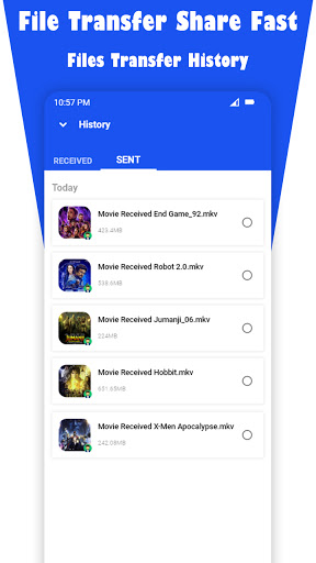 WeSend File Transfer app is fastest file transfer app can transfer data including Images, movies, videos, music, Apps, wallpapers, GIFs etc.
