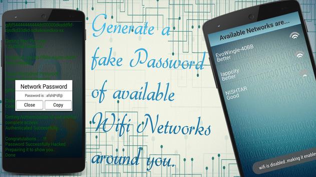 This is a prank application to make your friends fool and to collect fun. It has not capability to hack wifi spots.