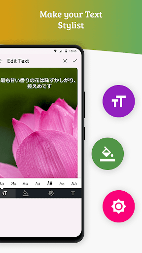 Al giorno d'oggi tutti amano pubblicare le loro foto a vari conti sui social media.Questa app dà la migliore opportunità di scrivere testi sulla tua foto nella lingua giapponese con la tastiera di lingua giapponese.