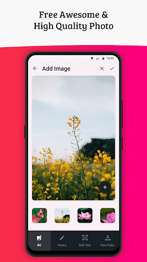 Dà fantastici funzionalità per scrivere parole di te stesso e condividerlo con tutti.Ora puoi condividere facilmente i tuoi sentimenti con la tua immagine sul festival come Holi, Diwali, Navaratri da desiderare sulla tua lingua.Puoi aggiungere testo con sfondo, testi normali o aggiungere testo circolare sulla tua foto.