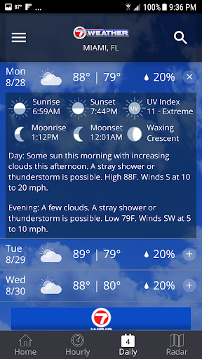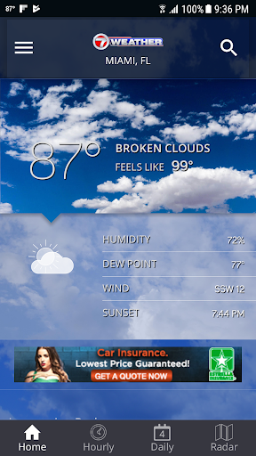 L'app 7 di notizie fornisce le previsioni, le condizioni attuali, il radar, il monitoraggio delle tempeste e altre informazioni meteorologiche per le contee di Miami-Dade, Broward e Monroe.Riceverai condizioni aggiornate insieme alle previsioni ogni ora e sette giorni.La mappa radar interattiva fornisce informazioni in tempo reale, radar animati e satellitari per ovunque negli Stati Uniti puoi anche tenere il passo con le condizioni di viaggio digitando qualsiasi città o stato per ottenere le informazioni meteorologiche attuali.E, naturalmente, se un uragano minacciasse, otterrai tutte le informazioni necessarie per tenere traccia della tempesta.